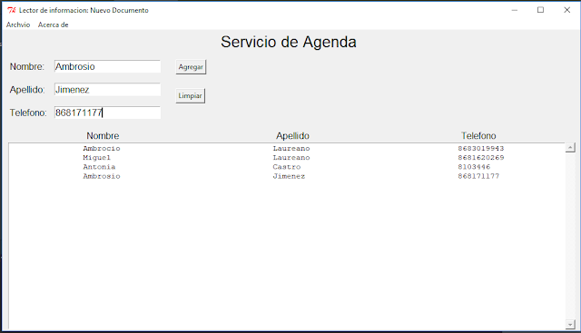 Para este caso desarrolle un pequeño gestor de contactos, una especie de agenda que permite almacenar los registros en archivos .csv y a su vez en formatos .txt, ademas de facilirtar su lectura en el programa una vez guardado el documento.